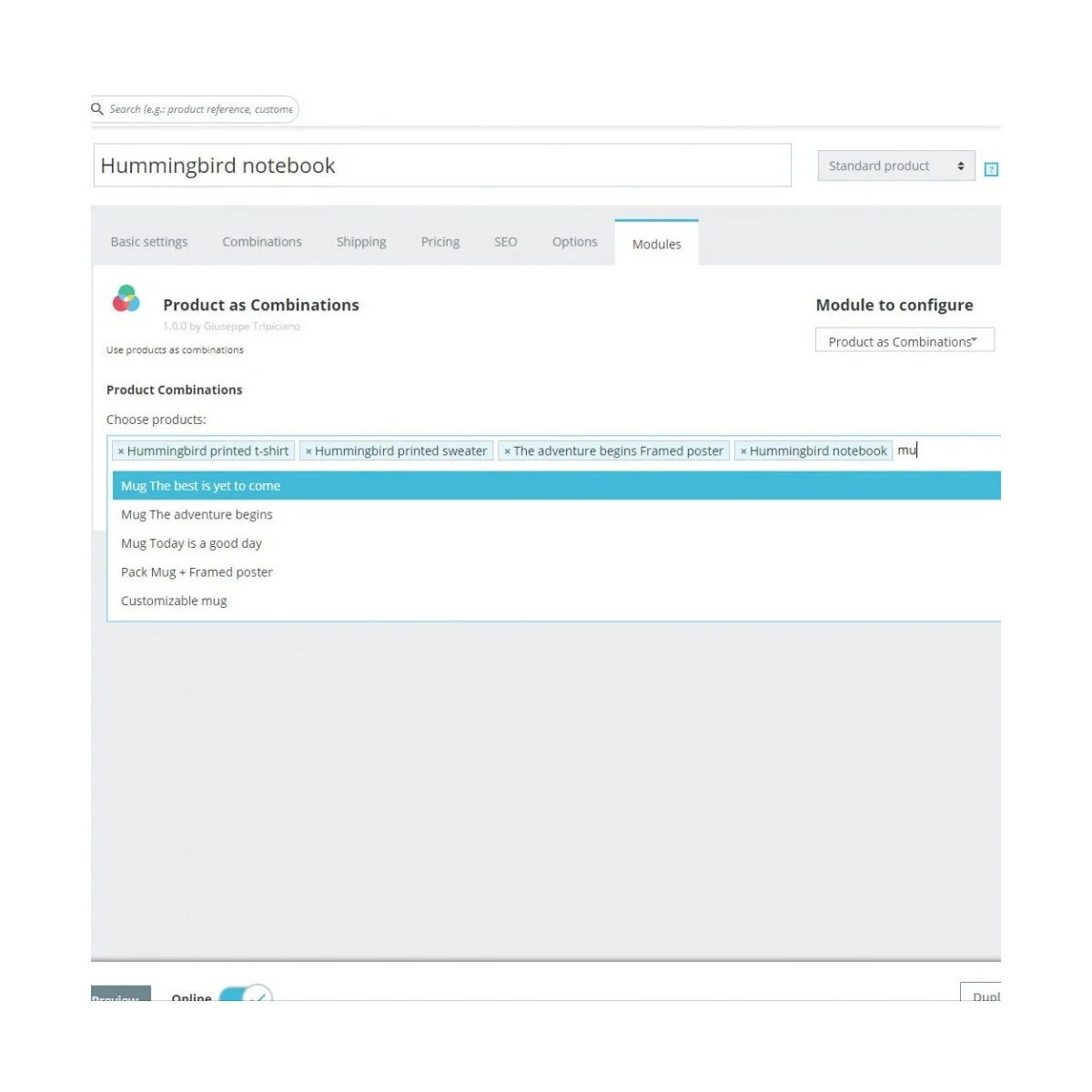 ماژول محصولات به عنوان ترکیب مجازی پرستاشاپ – اتصال محصولات به هم